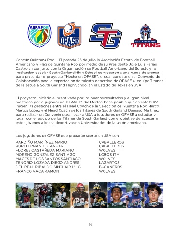 Colaboración para la exportación de talento deportivo de OFASE al equipo Titanes