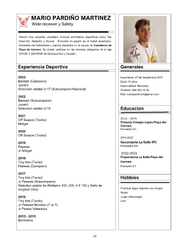 Kwon-Do, Natación y Soccer. Encontré mi pasión en el futbol americano,