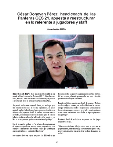 pasado, el head coach de las Panteras GES 21, César Donovan Ahí nos estamos enfocando, en desarrollar esa parte y también