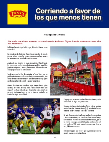 *Por cada touchdown anotado, los corredores de Auténticos Tigres donarán órdenes de tacos a los